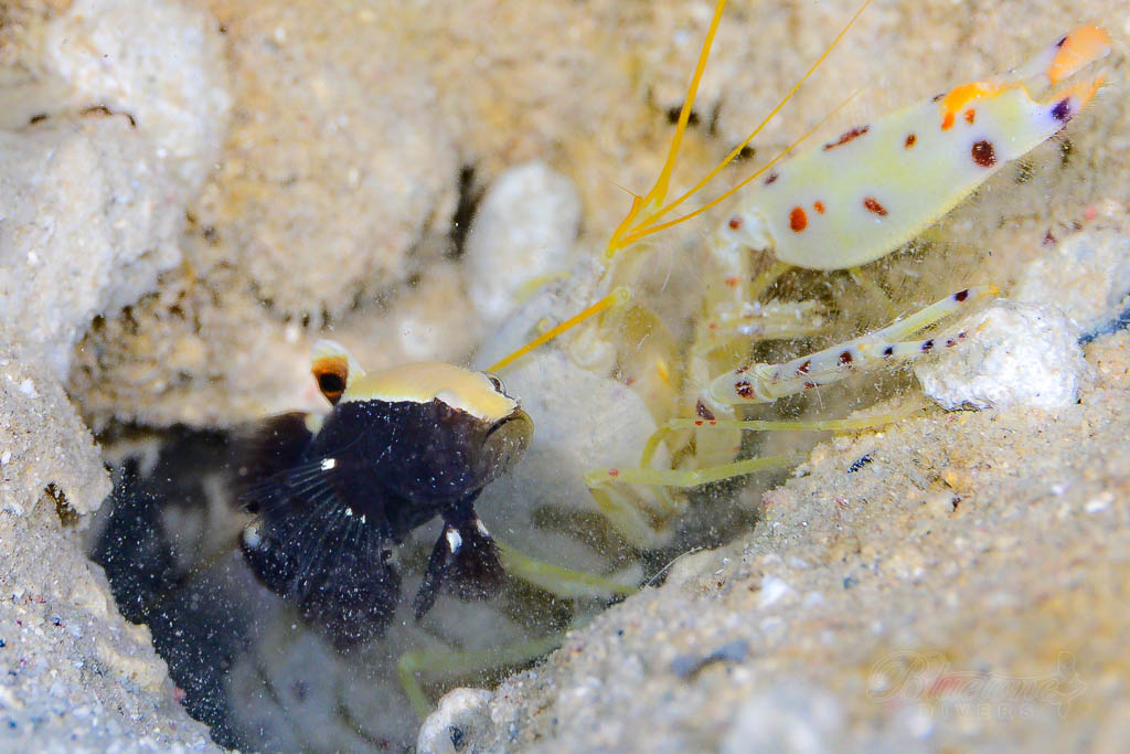 ブルドーザーみたいなブドウテッポウエビが砂を書き出すので、モウモウとしてます。